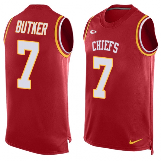 Home>NFL>Kansas City Chiefs>Harrison Butker>Men's Nike Kansas City Chiefs #7 Harrison Butker Limited Red Player Name & Number Tank Top NFL Jersey