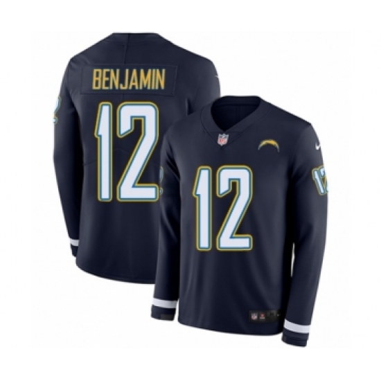 >Men's Nike Los Angeles Chargers #12 Travis Benjamin Limited Navy Blue Therma Long Sleeve NFL Jersey