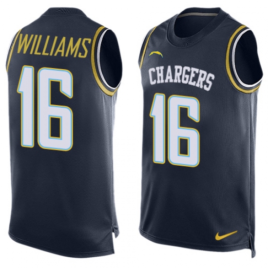 Home>NFL>Los Angeles Chargers>Tyrell Williams>Men's Nike Los Angeles Chargers #16 Tyrell Williams Limited Navy Blue Player Name & Number Tank Top NFL Jersey