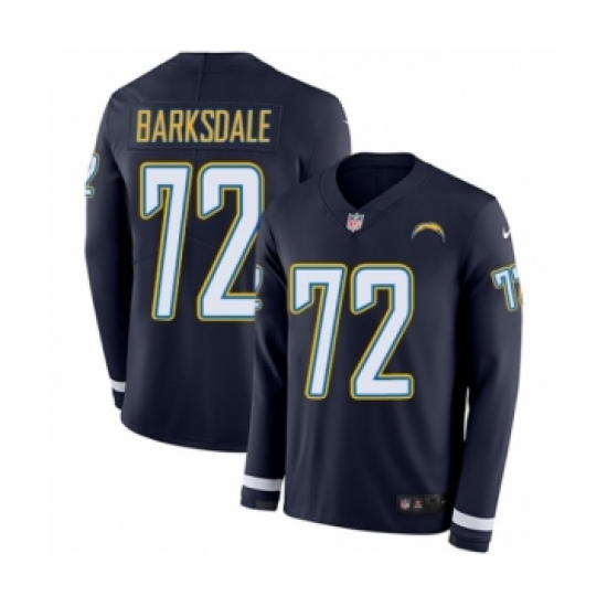 Men's Nike Los Angeles Chargers #72 Joe Barksdale Limited Navy Blue Therma Long Sleeve NFL Jersey