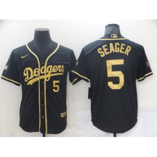 Men's Nike Los Angeles Dodgers #5 Corey Seager Black Gold Authentic Jersey