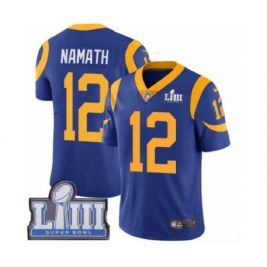 Men's Nike Los Angeles Rams #12 Joe Namath Royal Blue Alternate Vapor Untouchable Limited Player Super Bowl LIII Bound NFL Jersey