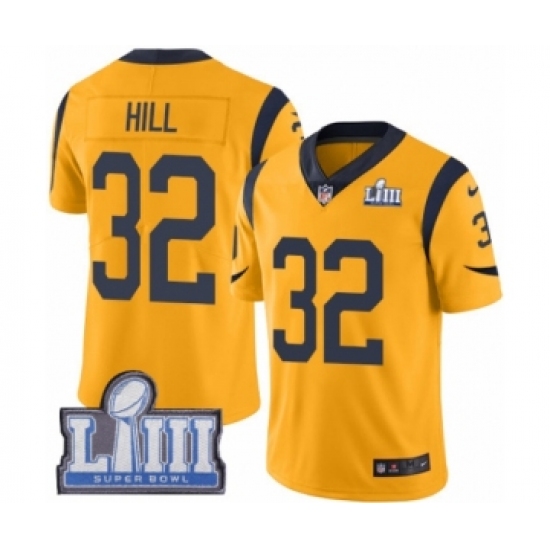 >Men's Nike Los Angeles Rams #32 Troy Hill Limited Gold Rush Vapor Untouchable Super Bowl LIII Bound NFL Jersey