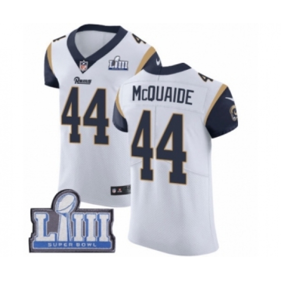 >Men's Nike Los Angeles Rams #44 Jacob McQuaide White Vapor Untouchable Elite Player Super Bowl LIII Bound NFL Jersey
