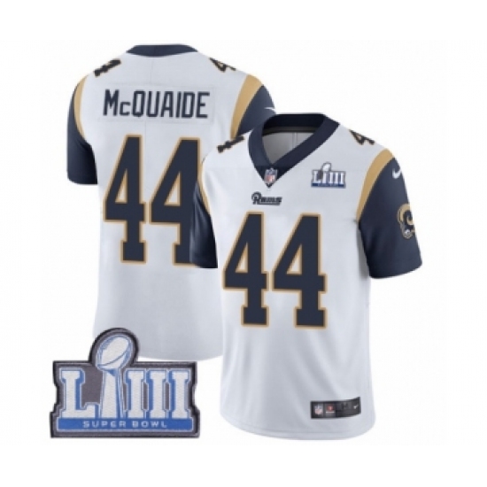 Men's Nike Los Angeles Rams #44 Jacob McQuaide White Vapor Untouchable Limited Player Super Bowl LIII Bound NFL Jersey