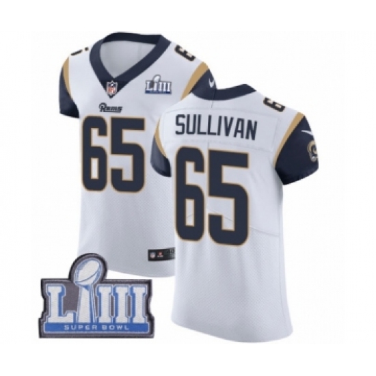 Men's Nike Los Angeles Rams #65 John Sullivan White Vapor Untouchable Elite Player Super Bowl LIII Bound NFL Jersey