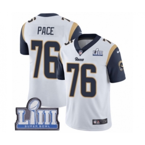 Men's Nike Los Angeles Rams #76 Orlando Pace White Vapor Untouchable Limited Player Super Bowl LIII Bound NFL Jersey