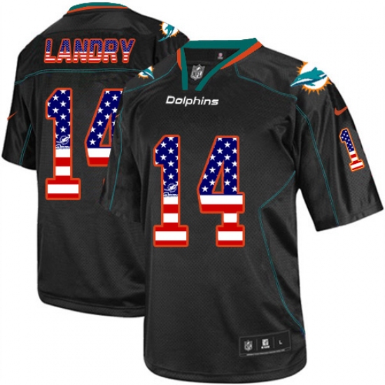 Men's Nike Miami Dolphins #14 Jarvis Landry Elite Black USA Flag Fashion NFL Jersey