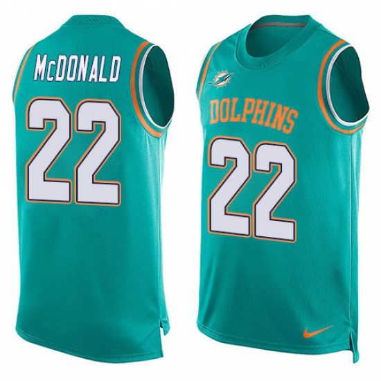 Home>NFL>Miami Dolphins>T.J. McDonald>Men's Nike Miami Dolphins #22 T.J. McDonald Limited Aqua Green Player Name & Number Tank Top NFL Jersey