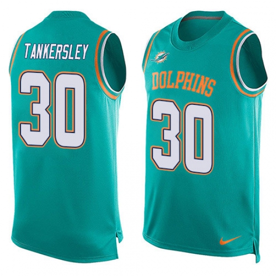 Home>NFL>Miami Dolphins>Cordrea Tankersley>Men's Nike Miami Dolphins #30 Cordrea Tankersley Limited Aqua Green Player Name & Number Tank Top NFL Jersey