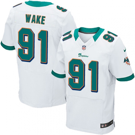 Men's Nike Miami Dolphins #91 Cameron Wake Elite White NFL Jersey