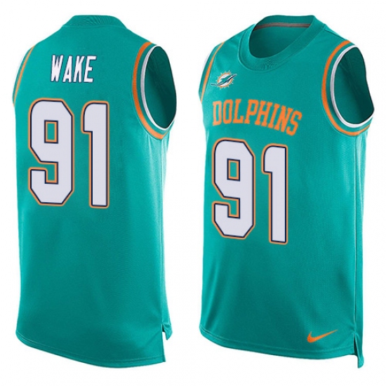 Men's Nike Miami Dolphins #91 Cameron Wake Limited Aqua Green Player Name & Number Tank Top NFL Jersey