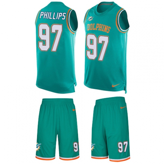 Men's Nike Miami Dolphins #97 Jordan Phillips Limited Aqua Green Tank Top Suit NFL Jersey