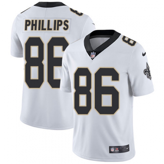 Home>NFL>New Orleans Saints>John Phillips>Men's Nike New Orleans Saints #86 John Phillips White Vapor Untouchable Limited Player NFL Jersey
