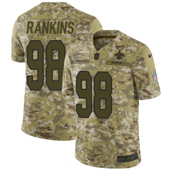 >Men's Nike New Orleans Saints #98 Sheldon Rankins Limited Camo 2018 Salute to Service NFL Jersey
