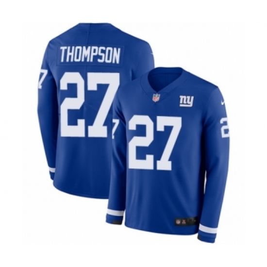 >Men's Nike New York Giants #27 Darian Thompson Limited Royal Blue Therma Long Sleeve NFL Jersey