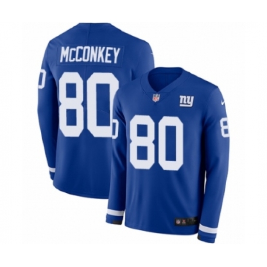 >Men's Nike New York Giants #80 Phil McConkey Limited Royal Blue Therma Long Sleeve NFL Jersey
