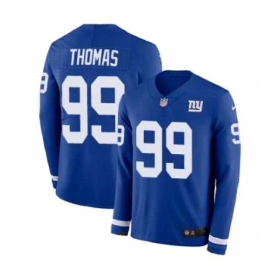 >Men's Nike New York Giants #99 Robert Thomas Limited Royal Blue Therma Long Sleeve NFL Jersey