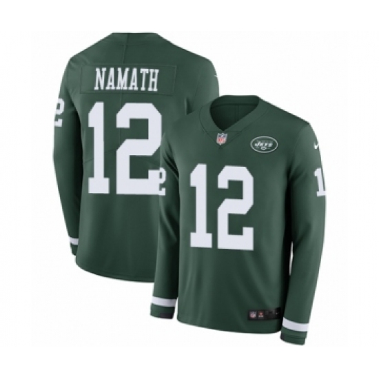 Men's Nike New York Jets #12 Joe Namath Limited Green Therma Long Sleeve NFL Jersey