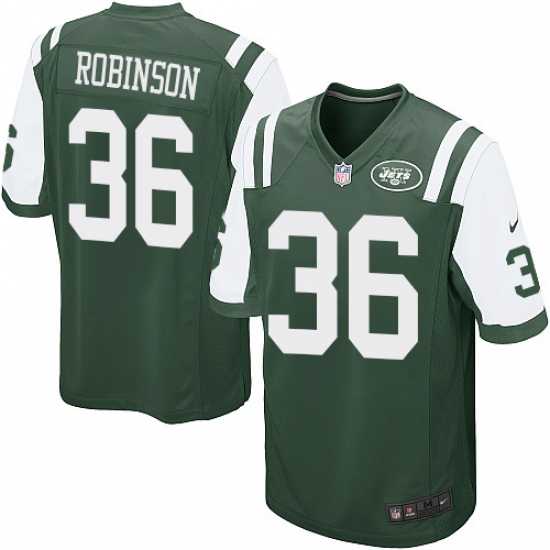 Home>NFL>New York Jets>Rashard Robinson>Men's Nike New York Jets #36 Rashard Robinson Game Green Team Color NFL Jersey