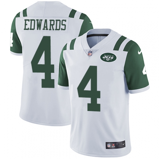 Men's Nike New York Jets #4 Lac Edwards White Vapor Untouchable Limited Player NFL Jersey