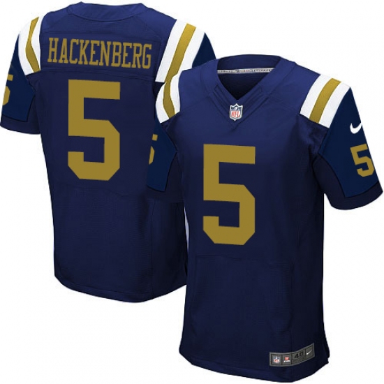 Men's Nike New York Jets #5 Christian Hackenberg Elite Navy Blue Alternate NFL Jersey