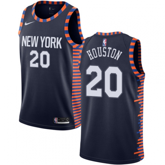 >Men's Nike New York Knicks #20 Allan Houston Swingman Navy Blue NBA Jersey - 2018 19 City Edition