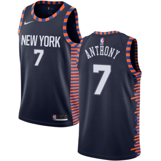 Men's Nike New York Knicks #7 Carmelo Anthony Swingman Navy Blue NBA Jersey - 2018 19 City Edition