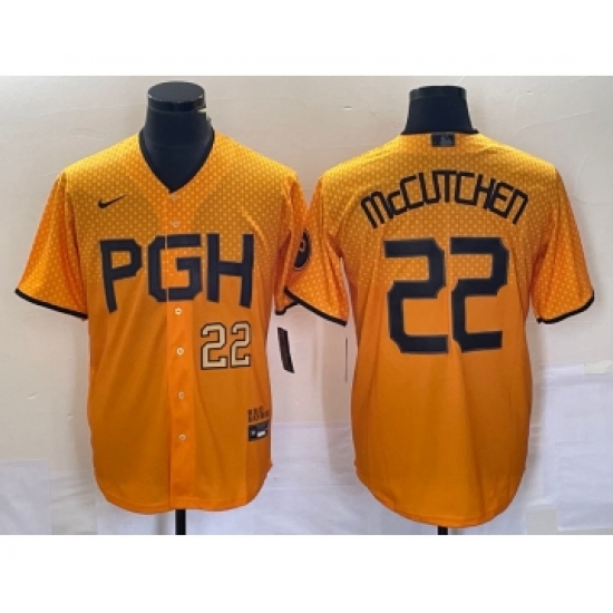 Men's Nike Pittsburgh Pirates #22 Andrew McCutchen Number Gold 2023 City Connect Stitched Jersey 1