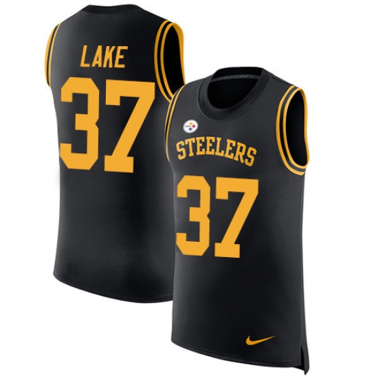 Home>NFL>Pittsburgh Steelers>Carnell Lake>Men's Nike Pittsburgh Steelers #37 Carnell Lake Limited Black Rush Player Name & Number Tank Top NFL Jersey