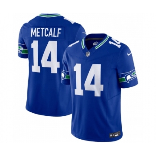 Men's Nike Seattle Seahawks #14 D.K. Metcalf Royal 2023 F.U.S.E. Vapor Limited Throwback Stitched Jersey