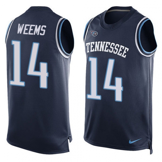 Home>NFL>Tennessee Titans>Eric Weems>Men's Nike Tennessee Titans #14 Eric Weems Limited Navy Blue Player Name & Number Tank Top Tank Top NFL Jersey
