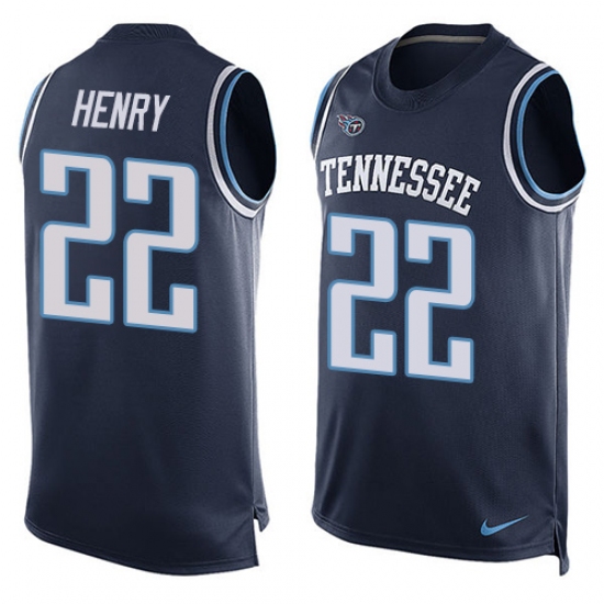 Home>NFL>Tennessee Titans>Derrick Henry>Men's Nike Tennessee Titans #22 Derrick Henry Limited Navy Blue Player Name & Number Tank Top NFL Jersey