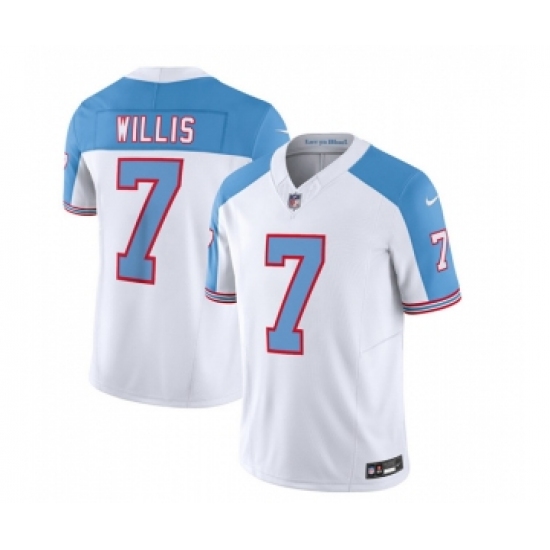 Home>NFL>Tennessee Titans>Malik Willis>Men's Nike Tennessee Titans #7 Malik Willis White Blue 2023 F.U.S.E. Vapor Limited Throwback Football Stitched Jersey