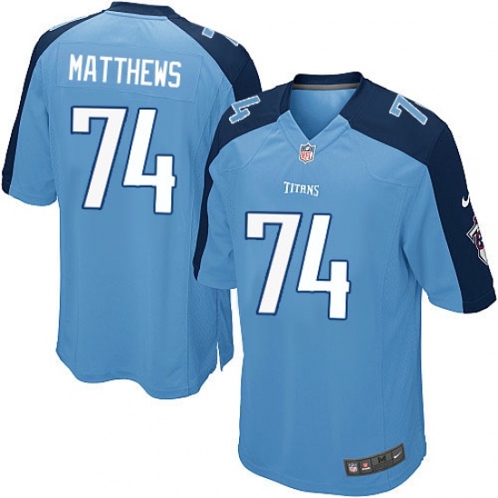 Home>NFL>Tennessee Titans>Bruce Matthews>Men's Nike Tennessee Titans #74 Bruce Matthews Game Light Blue Team Color NFL Jersey