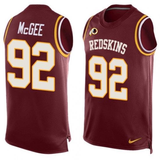 Home>NFL>Washington Redskins>Stacy McGee>Men's Nike Washington Redskins #92 Stacy McGee Limited Red Player Name & Number Tank Top NFL Jersey