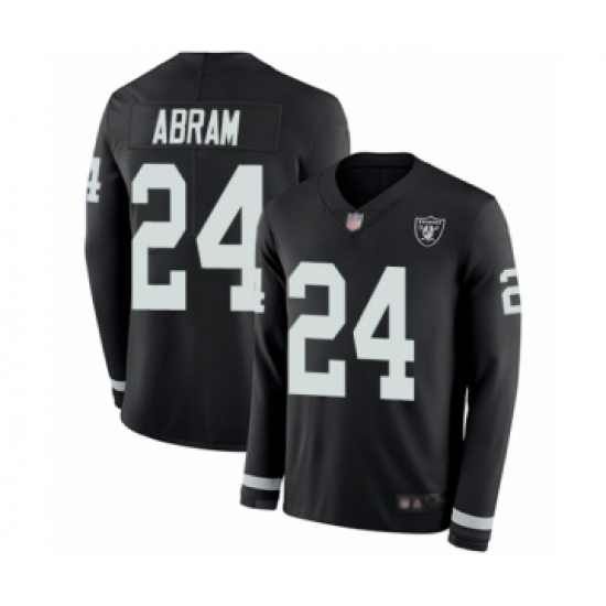 >Men's Oakland Raiders #24 Johnathan Abram Limited Black Therma Long Sleeve Football Jersey