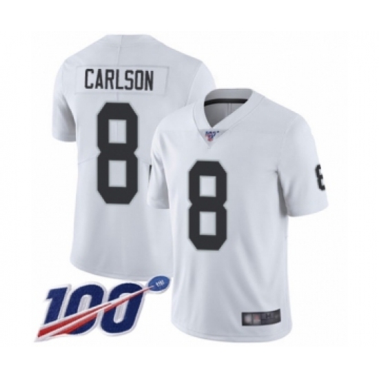 >Men's Oakland Raiders #8 Daniel Carlson White Vapor Untouchable Limited Player 100th Season Football Jersey