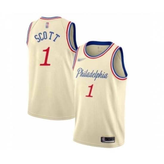 >Men's Philadelphia 76ers #1 Mike Scott Swingman Cream Basketball Jersey - 2019 20 City Edition