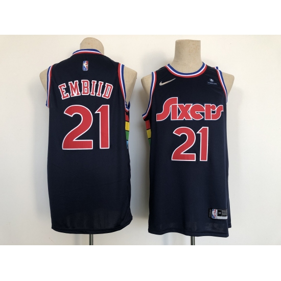Men's Philadelphia 76ers #21 Joel Embiid Navy 2021-22 City Ediition Stitched Basketball Jersey