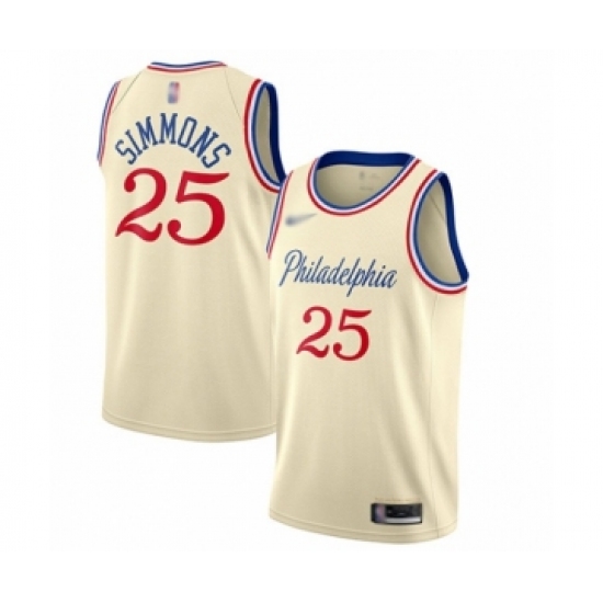 >Men's Philadelphia 76ers #25 Ben Simmons Swingman Cream Basketball Jersey - 2019 20 City Edition
