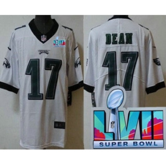>Men's Philadelphia Eagles #17 Nakobe Dean Limited White Super Bowl LVII Vapor Jersey