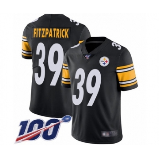 >Men's Pittsburgh Steelers #39 Minkah Fitzpatrick Black Team Color Vapor Untouchable Limited Player 100th Season Football Jersey