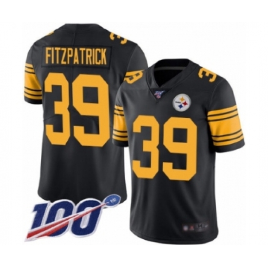 >Men's Pittsburgh Steelers #39 Minkah Fitzpatrick Limited Black Rush Vapor Untouchable 100th Season Football Jersey