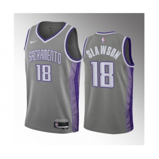 Men's Sacramento Kings #18 Jalen Slawson Gray 2023 Draft City Edition Stitched Jersey