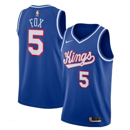 Men's Sacramento Kings #5 De'Aaron Fox Blue 2019-20 Hardwood Classics Swingman Stitched Basketball Jersey