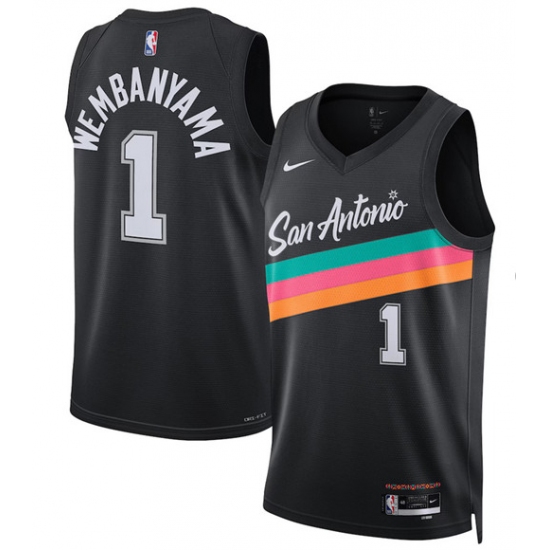 Men's San Antonio Spurs #1 Victor Wembanyama Black 2025-26 City Edition Swingman Stitched Basketball Jersey