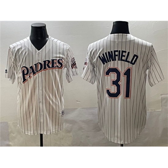 >Men's San Diego Padres #31 Dave Winfield White Throwback With Cool Base Stitched Baseball Jersey