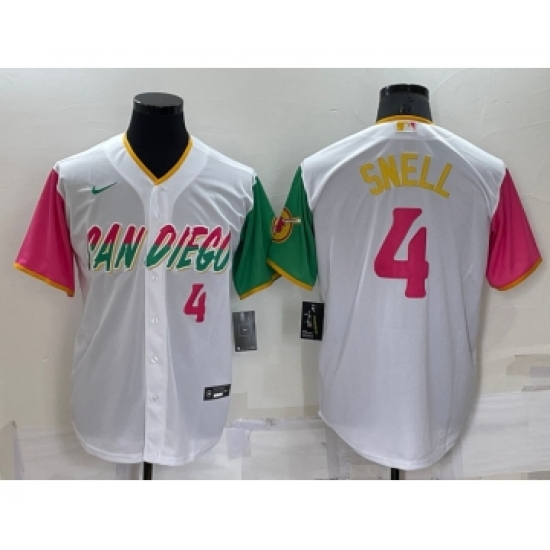 Men's San Diego Padres #4 Blake Snell White 2022 City Connect Cool Base Stitched Jersey