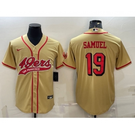 Men's San Francisco 49ers #19 Deebo Samuel Gold Color Rush With Patch Cool Base Stitched Baseball Jersey